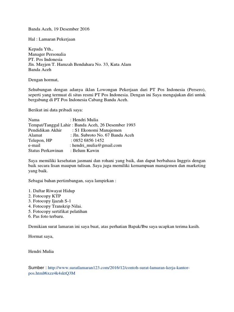 Contoh Surat Lamaran Di Kantor Pos - Contoh Surat Lamaran Kerja Yang Baik Dan Benar - Supaya lebih jelas bagaimana format surat lamaran kerja kantor pos silahkan simak contoh yang sudah saya siapkan di bawah ini.. contoh surat lamaran cpns ini kami tulis sebagai bahan rujukan bagi kamu yang sedang mempersiapkan diri untuk mengikuti seleksi masuk sebagai pegawai negeri sipil cpns. surat lamaran kerja honorer di pemerintahan contoh lamaran kerja. Menulis surat lamaran kerja dalam bahasa inggris memang masih jarang sekarang ini. Inilah pembahasan lengkap terkait contoh mengirim surat lamaran kerja lewat kantor pos. di tahun 2016 ini pos berperan sangat penting dalam membantu masyarakat indonesia pada umumnya sebab dengan kemudahan.
