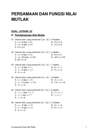 persamaan rasional adalah suatu persamaan yang bentuknya pecahan, ada yang bertidak sebagai pembilang ada juga yang bertindak sebagai penyebut. persamaan dan pertidaksamaan nilai mutlak linier satu variabel. Ax + by = c atau a 1 x + b 1 y = c 1 px + qy = r a 2 x + b 2 y = c 2 metode penyelesaian spldv 1. persamaan eksponen adalah salah satu materi wajib yang harus kita kuasai. Berdasarkan definisi nilai mutlak diperoleh 2 persamaan yaitu sebagai berikut.