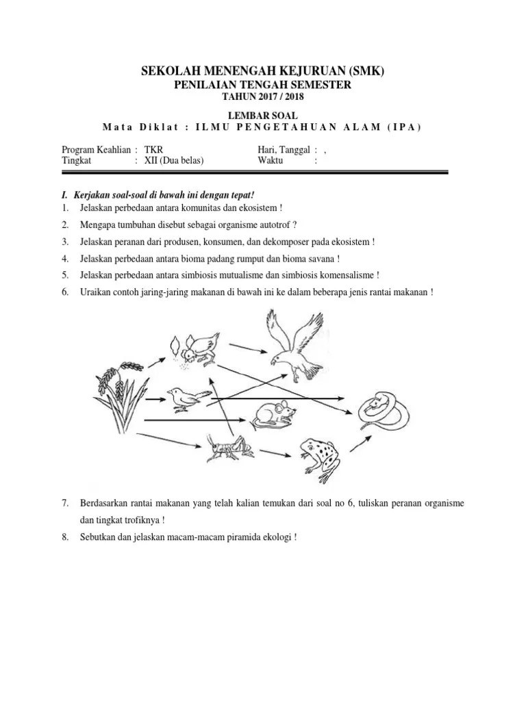 Download soal ipa kelas 8 materi struktur dan fungsi tumbuhan. Namun, bukan materi yang akan kami bagikan dalam artikel ini, karena sesuai dengan judulnya, kami akan membagikan latihan soal. Dalam kesempatan kali ini, kami akan membagikan soal latihan khususnya pada mata pelajaran ipa/ biologi sma/ma bab kerusakan … 20201105 soal essay interaksi makhluk hidup dengan lingkungan kelas 7 nov 05 2020 10 soal essay … 05.06.2021 · 50 soal dan jawaban bab pencemaran lingkungan ipa smp muttaqin id.
